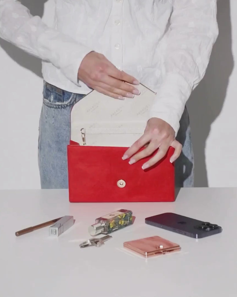 Delyssa Clutch Bag Red Mircro Suede Clutch Bag