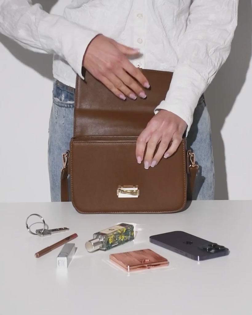 Discover the Orleans Crossbody Bag by Paradox London, designed with a structured flap and magnetic closure, this refined style offers just the right amount of space for your essentials while elevating any outfit with effortless sophistication.